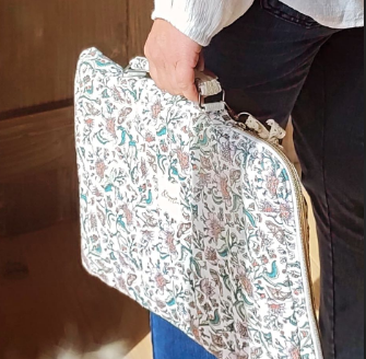 Entièrement confectionnée dans notre petit atelier, cette sacoche matelassée protège votre matériel avec douceur et style.