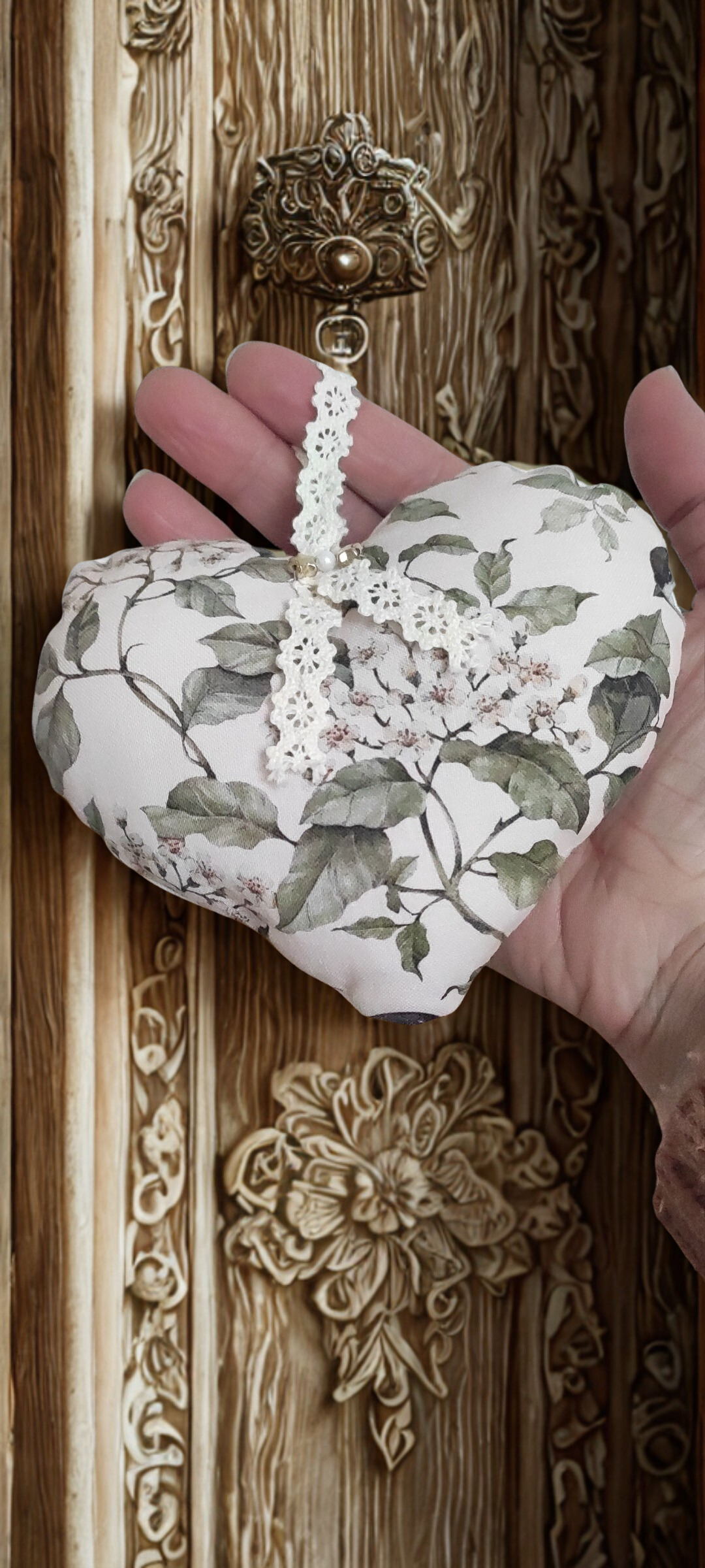 Imaginez ce petit cœur, gonflé de tendresse et de légèreté, non pas par de l’air, mais par une ouate moelleuse et des éclats de fleurs de lavande naturelles. Un parfum subtil, délicat et jamais entêtant, se libère doucement, évoquant la pureté des sentiments et la douceur des souvenirs partagés. Le dos de cette création est quand à elle en coton ancien chiné avec amour ❤️