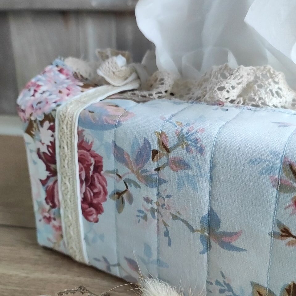 J’ai réalisé un modèle parfaitement adapté aux dimensions des boîtes à mouchoirs du commerce, entièrement doublé pour une finition soignée, et agrémenté de délicats détails de dentelle pour un rendu à la fois doux, raffiné et chaleureux.