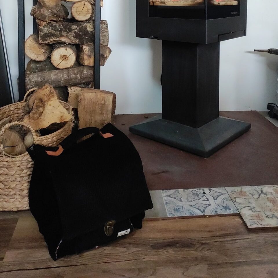 Ce sac à allume-feu a été confectionné sur commande pour une cliente souhaitant un accessoire pratique et esthétique pour stocker et transporter facilement son nécessaire pour la cheminée.